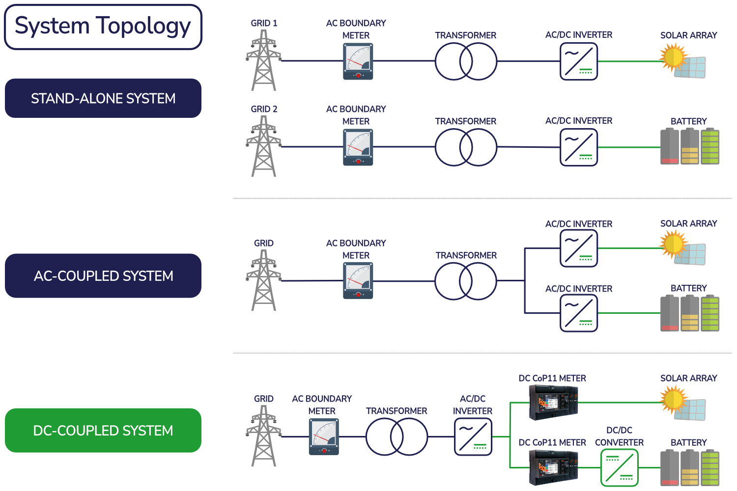 The CoP11-compliant DC asset metering configuration is intended for utility-scale solar PV and battery storage projects based on DC-coupled system architectures.